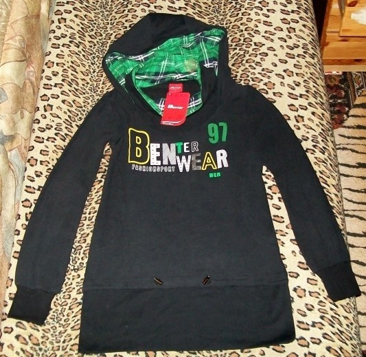 0Nabízím novou mikinu Benter prodloužené délky.Pěkný material,pruží.Moc hezký kousek,dostala jsem jí dárkem,ale je mi větší přes prsa.