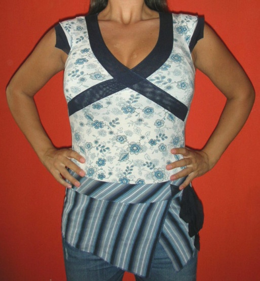 Bílo-modrá tunika promod, 100% bavlna, vhodné ke kalhotům i sukni. Velikost 38. Přes prsa 38cm, délka 67cm.