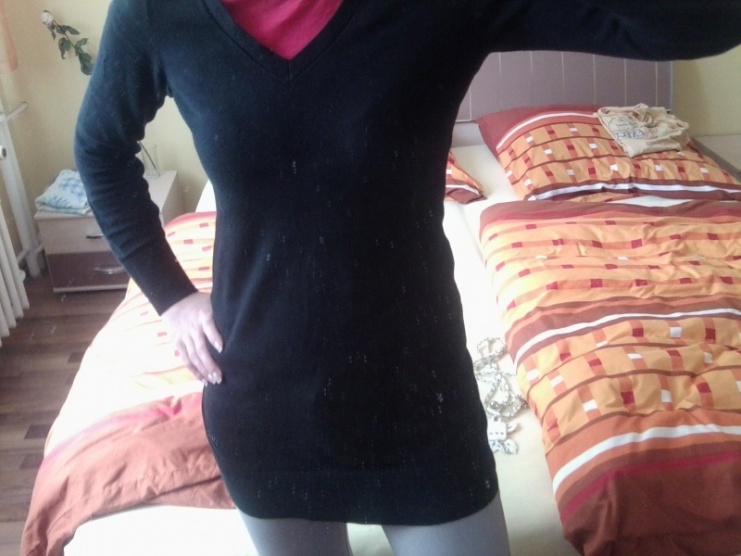 Svetřík je dvakrát vzatý, je vhodný k legínám i džínám, výstřih do ,,V´´, značka S. Oliver. Vypadá jako nový, bez veškerých vad či známek nošení. Za šmouhy na zrcadle se omlouvám.