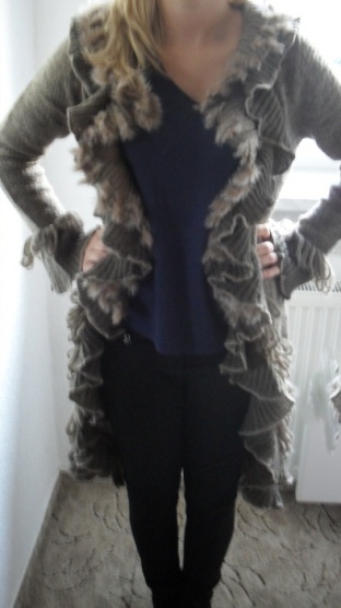 Nabízím úplně nový cardigan s ozdobnými okraji a rukávy...velikost bych řekla,že je UNI unáhlená koupě...původní cena 1000 Kč, kupováno v kamenném obchodě...