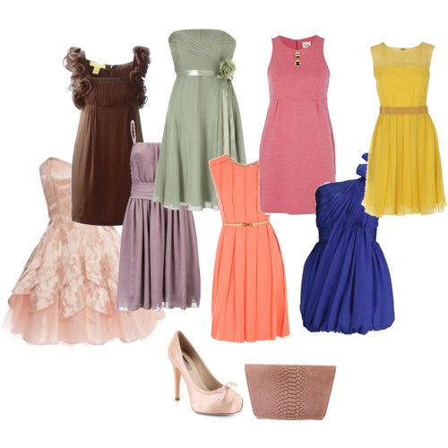 Zkusila jsem tady naházet ruzne barvičky šatu a dolu barevne podobné botky s kabelkou..Které by se vám libily nejvíc?
