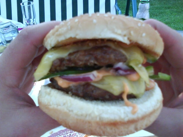 Vajíčko ba cibule by v hamburgeru správně němělo co dělat (což se dneska hodí, že) - pak je to karbanátek. Jinak je to paráda