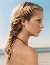 Mně by se k tvým šatům líbily zlaté páskovky a náušnice. Vlasy bych dala do ,,rybího copu" - jen trochu upravenějšího než na těchto fotkách: