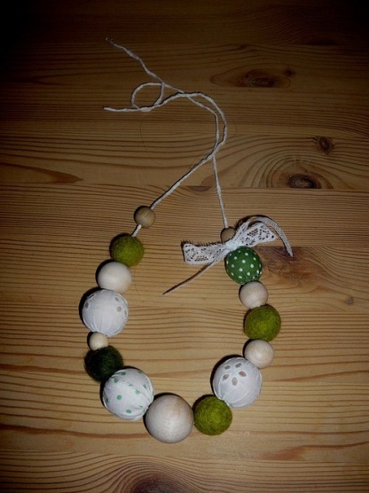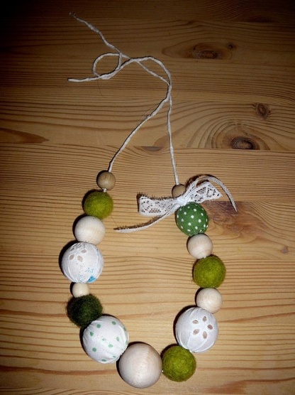 Ručně šité korálky z kvalitní dovozové jemné 100% bavlny, české bavlny, vyšívané látky, plsťenky, přírodní dřevěné korálky - navlečené na hedvábné šňurce. Korálky jsou doplněny jemnou krajkou. Poštovné a balné je 40Kč..