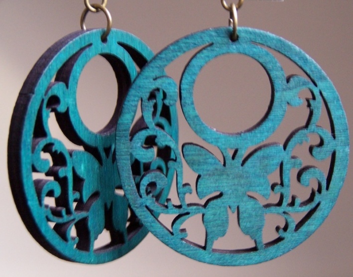 Prodám dřevěné naušnice (lehoučké!) s vyřezávaným motivem motýla. Krásné a netradiční. Průměr 4,5 cm.Cena s poštou 130,- Kč.