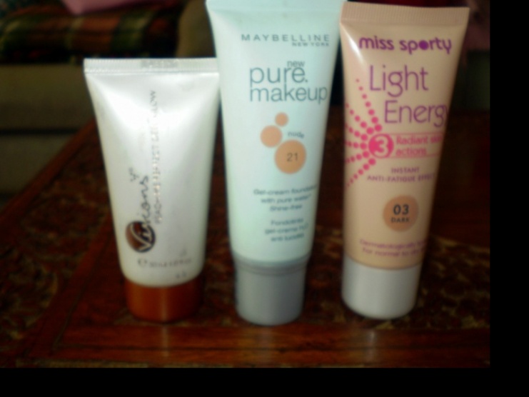 Make-up Maybelline Pure makeup odstín Nude (jednou vyzkoušený), Rozjasňující makeup Light Energy od Miss Sporty odstín Dark s vitamíny (použitý cca pětkrát) a tónovací krém Visions Oriflame odstín Peach glow (nepoužitý).Všechny tři jsou cca dva měsíce staré, prodám za 200 plus pošta.