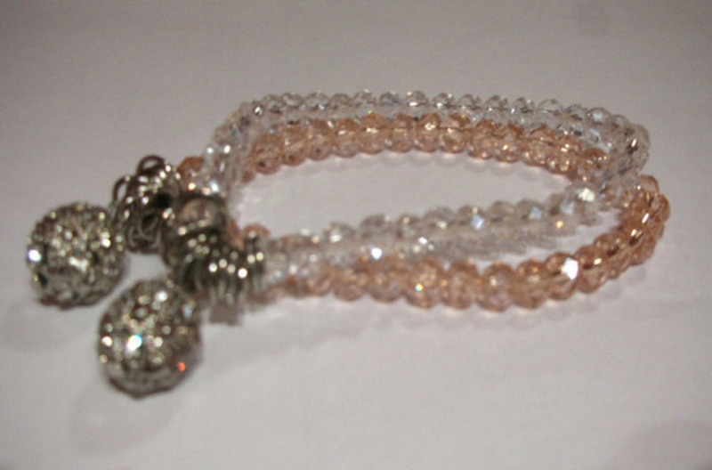 Jednou nošené náramky ze skleněných korálků, vpředu kamínkové přívěsky. Top stav. Poštovné 40Kč.