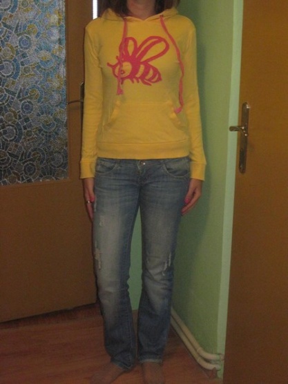 Nabízím pěknou růžovou mikinku s nápisem a k tomu žlutou mikinku se včelou.