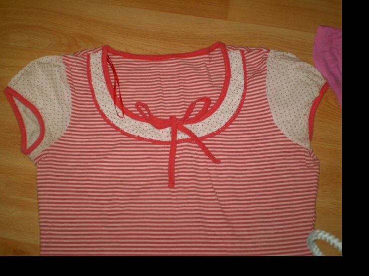 Nabízím krásné Bílo-červené tričko s pruhy puntíky a s mašličkou