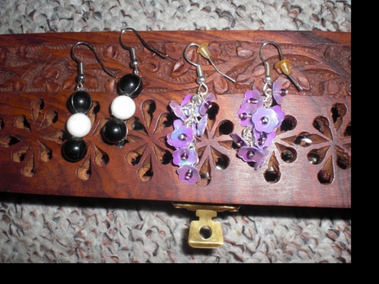 Naušnice jsou nenošené a ty černobílé jsou domácí výroba od kamarádky.