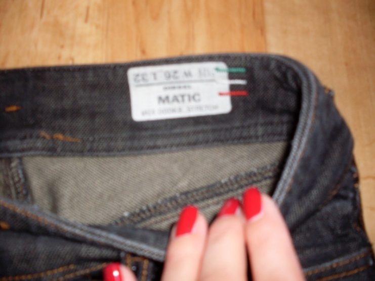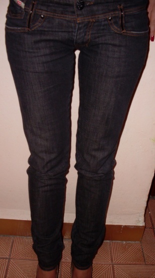 Krásně sedí, zajímavé detaily, prošití koženkou u švů kalhot, a na zadečku, placka Diesel.