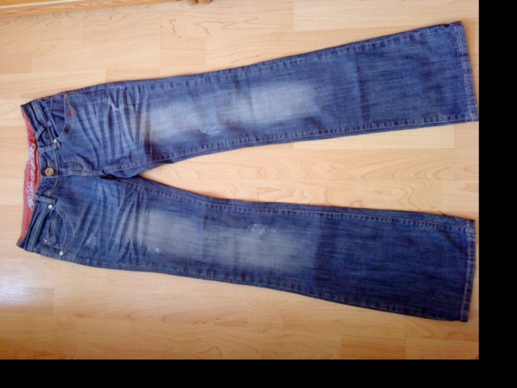 Prodám málo nošené džíny, pěkně padnou a jsou elastické. Jsou v pěkném stavu, nosila jsem je málo, ale jsou odřené nohavice (při běžném nošení to není vidět). Rozměry: pas 36 - 40, sed 17, boky 42 - 46. Cena 350 včetně pošty