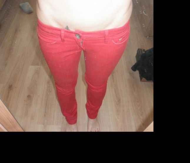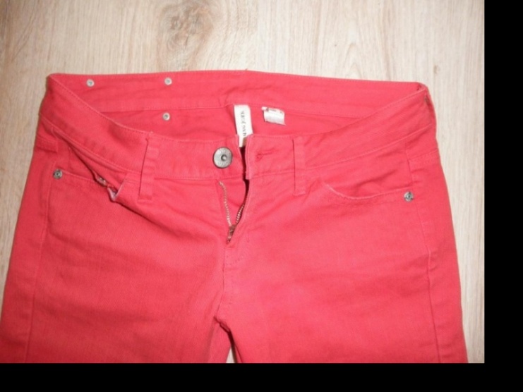 Krásné džíny MANGO vel. 36 červené barvičky. Riflíky byly nošené ale v pořádku bez kazů.Tady jsou míry..