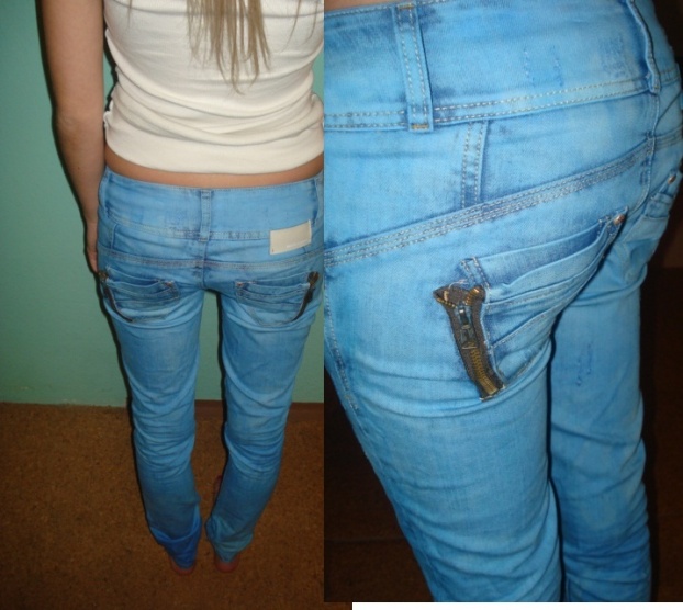 Jsou bokové, úzký střih nohavic a vzadu mají nízko položené kapsičky, což dělá krásný zadeček.