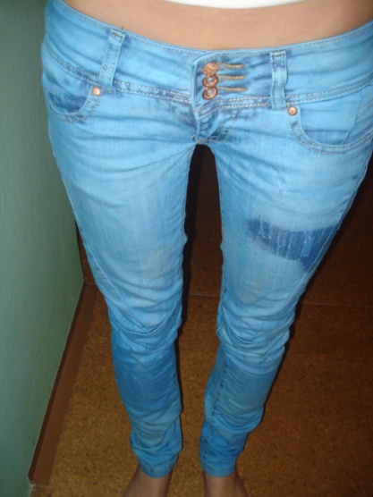 Nabízím minimálně nošené džínečky v modré barvě. Původní barva byla jiná, ale jsou kvalitně obarvené na tuto.