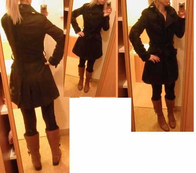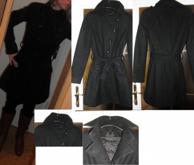 Zimní kabát z New Yorkeru,zakoupen minulou sezonu,nošený ale v super stavu ,jediné na jednom nárameníku potřeba dát nový knoflík,pásek byl na sponu ale sundala jsem ji nosila jsem na zavázání.Knoflíky jsou v zajímavém stylu,lze nosit na více způsobů,vzadu je zajímavě skládaný.Na XS sedí perfektně.Vypodšívkovaný.Materiál směs polyesteru a vlny,lísteček jsem bohužel ostřihla.Moc hezky sedí,omlouvám se za nekvalitní fota ale velice špatně se to fotí.Za zlomek PC,děkuji