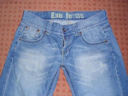 EXE style 275-19,moderní snížené kapsy barevně vyšité,dřená džínovovina,odlehčená.Volný styl.