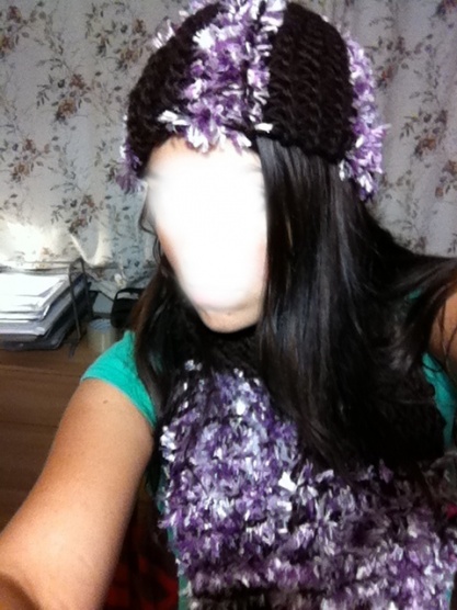 Fialkovo - hnědá šála a čepice