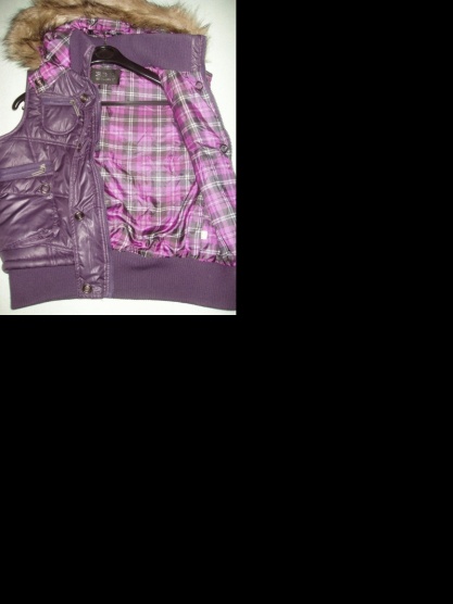 Prodám fialovou, mírně lesklou vestu. Výrobce uvádí velikost L, já bych řekla že je to spíše M.
