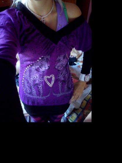 Krásný vzor na tunice. Možno mít spadlé i obě dvě ramena, nebo žádné. Tunika udělá krásnou postavu i díky pěknému výstřihu. Nijak poškozené, nechybí ani jeden kamínek. Tunika sedí na všechny velikosti