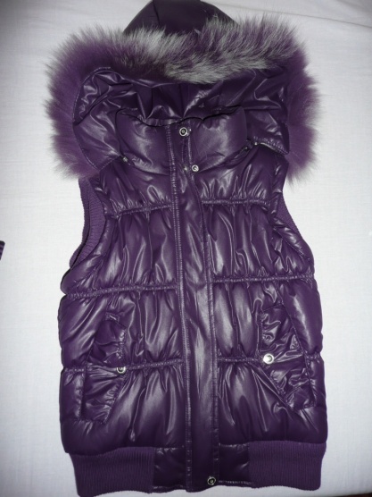 Prodám krásnou jednou nošenou vestičku,takže nová, barva tmavě fialová, kozíšek na kapuci, odepínací kapuca.Velikost psaná M,ale řekla bych spíše tak na S, já mám XS-S a je mi dobře, i když malé M by se taky vešlo.