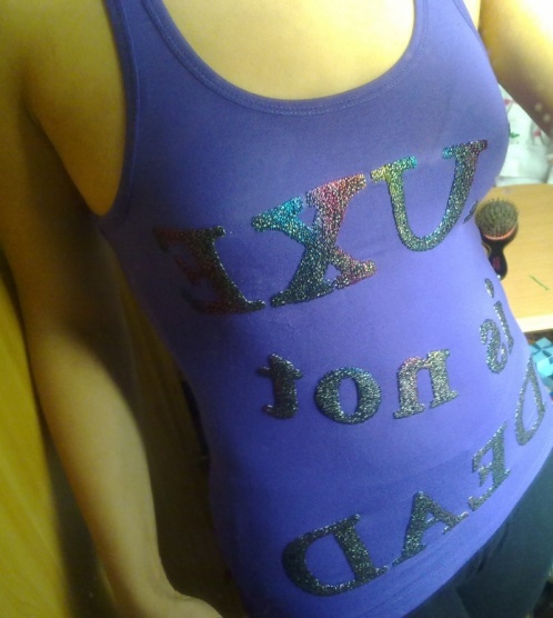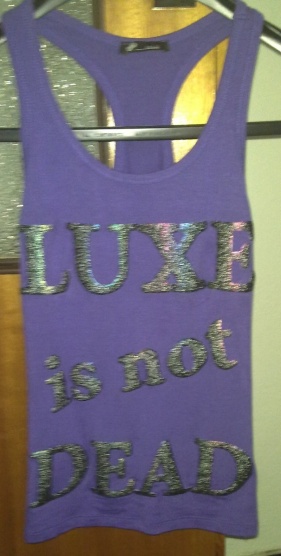 Fialové tílko s nápisem Luxe is not dead značky Kikiriki a ve velikosti S.
