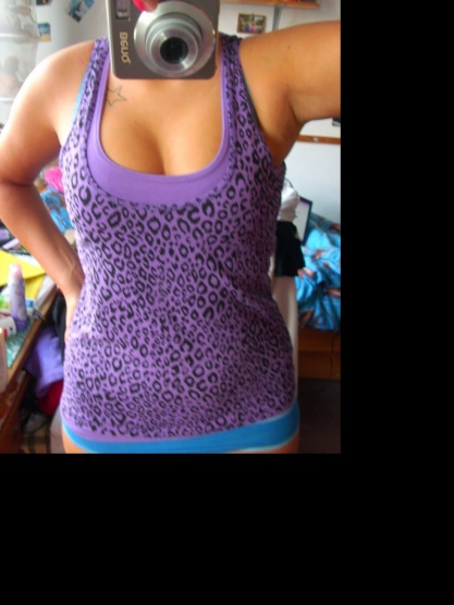 Prodám tílko fialové barvy se zvířecím vzorem. Velice pěkná látka. Tílko je dvojité, vytváří pěkný dojem.