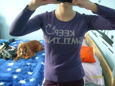 Nabízím fialové triko s hezkým kamínkovým potiskem, ani jeden kamínek nechybí, málo používané