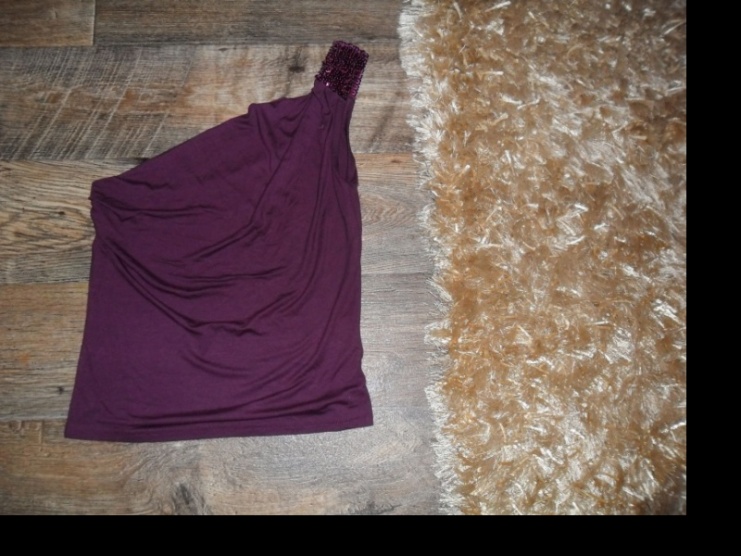 Prodám tričko ,fialové farby na jedno rameno..Na putku trička sú filtříky.Tričko ja málo nosené len lístoček z vnútra je odstrihnutý.V případném zájme pište prosím Sz,děkuji