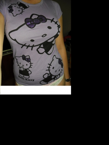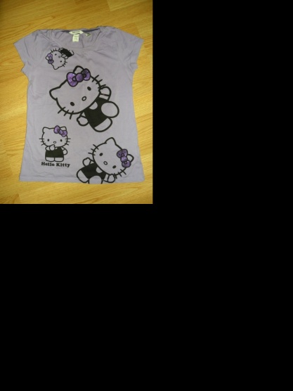 Tričko je kupováno v dětském H&M. Vel uvedena 170, ale padne S a podle mě i M. Párkrát vzaté na sebe, ale neunosím. Barva je sytější fialová než na fotce.