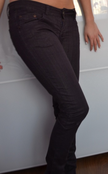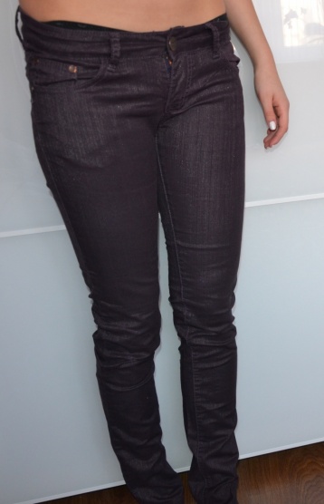 Fialovo - černé slim kalhoty