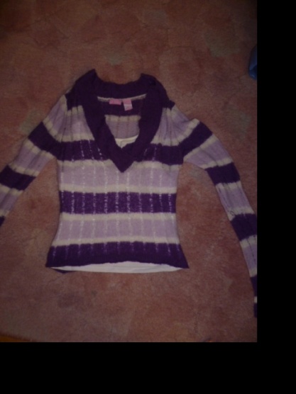 Prodám tento svetřík s všitým bílým nátělníkem. Je nošený, ale nemá žádné vady. Prodám za 99 Kč včetně dop. pošty.
