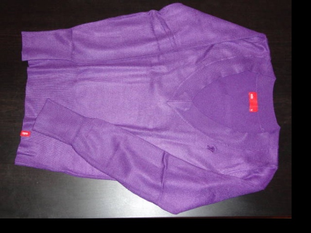 0Fialový jednoduchý svetr s výstřihem do V. Příjemný materiál. EDC by Esprit.