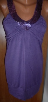 Prodám nádherný top s flitry a stříbrnými nitkami zn.: Amisu, PC: 399,- Kč, v oblasti prsou je krásně nařasené, což vytváří velice pěkný výstřih, psaná velikost M, rozměry: šířka pod prsy volně položené cca 38 cm a délka od ramene cca 75 cm. Dole je pružný pevnější lem, takže se dá tílko dá nařasit na délku podle Vašich představ.