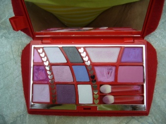 částečně použitá krásná kazetka s líčením očí a rtů, některé lesky použité, oční stíny vyzkoušené, kazetka je v textilním obalu, se...