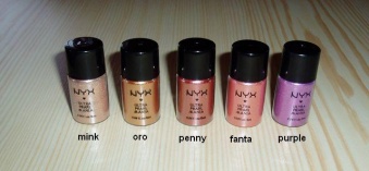 Prodám tyto pigmenty od Nyx, jsou NOVÉ zleva: mink, oro, penny, fanta, purple Cena: 40,-Kč/ks + pošta dle ČP štěteček NYX č.: 1, je to ten...