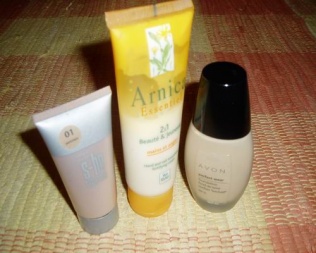 Make-up avon, odstín nude, světlý, 1/2 lahvičky (30ml) Make-up S-he, odstín porcelaine, tmavý, nevím kolik ho je, ale je ho taky tak půlka a víc, je...