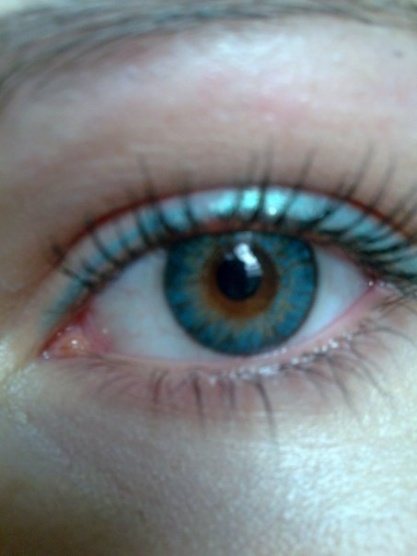 já na své zelené oči nosím tyto: Fresh Look Dimensions Caribian Aqua - v kombinaci s mýma zelenýma očima jsou jakoby modrozelené a hodně lidí se na mě vrhá a kouká mi z 2 cm do obličeje a ptá se jestli to mám svoji barvu, že je zvláštní. Ach jo, trochu taktu lidi