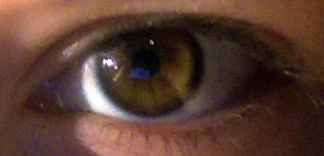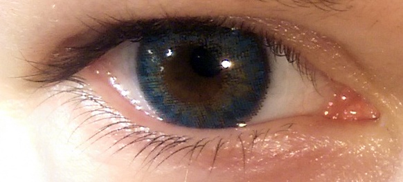 Přidávám moje čočky. V mém levém oku je hnědá čočka Magic Eye Mé pravé oko je bez čočky.
