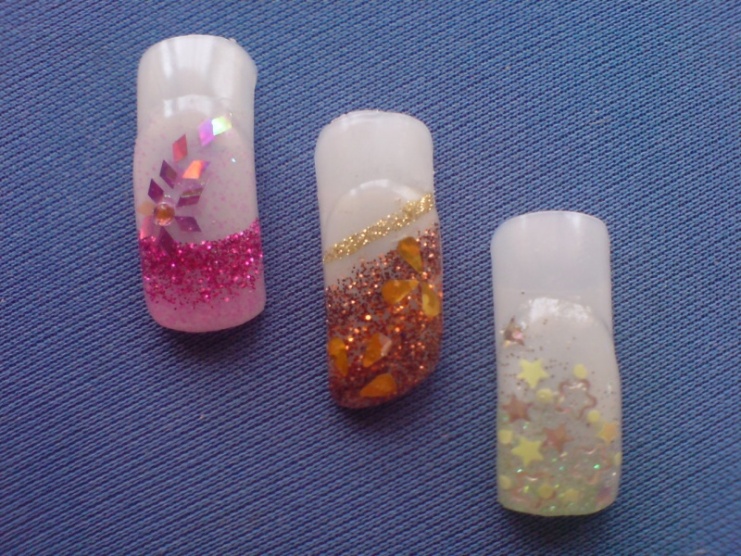 Ahoj, jelikož mě nebavilo každý měsíc dávat peníze za doplnění, tak sem si pořídila sadu a dělám si je sama. Na fotkách je to můj pátý pokus celkově (na mých nehtech třetí). Budu ráda za kritiku