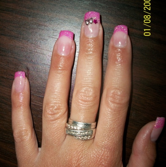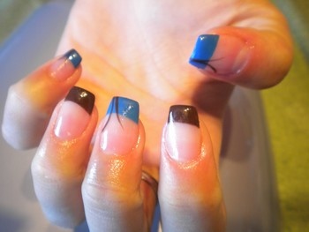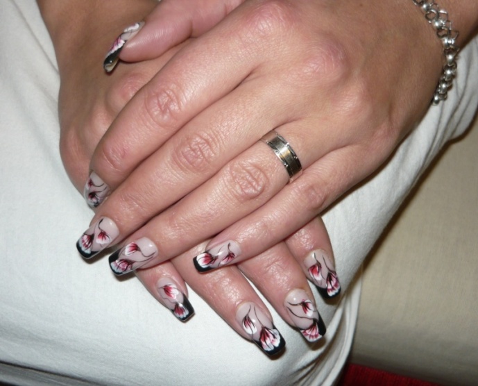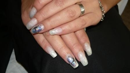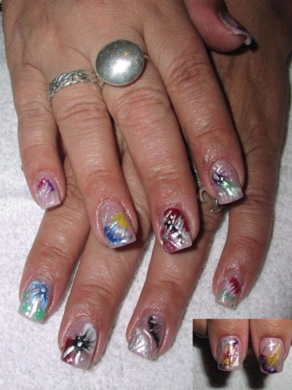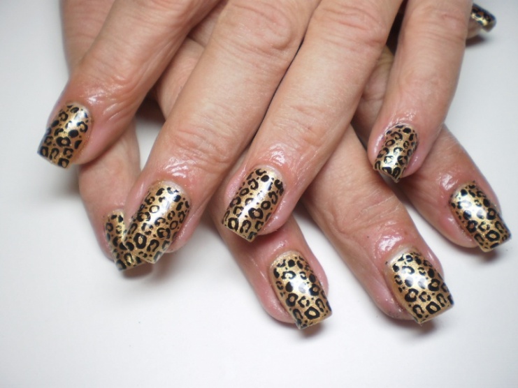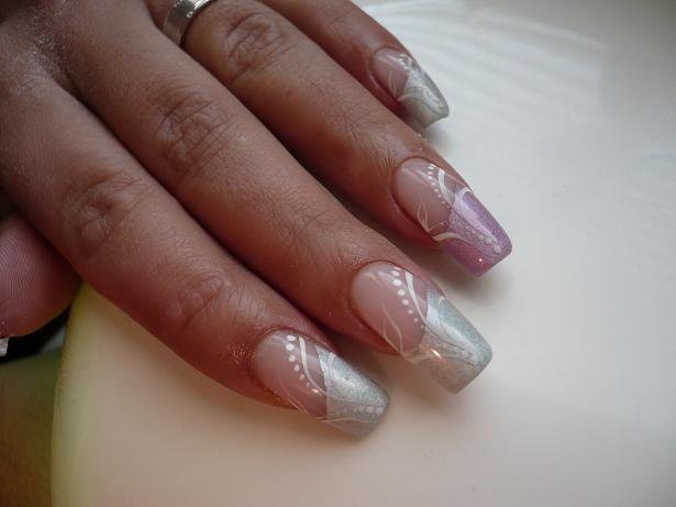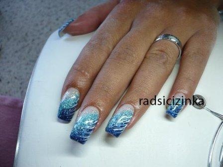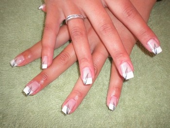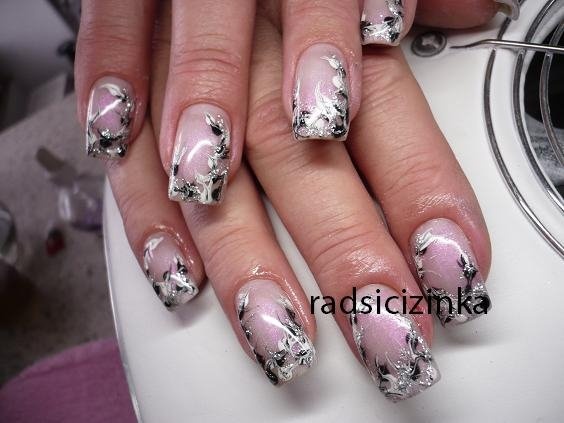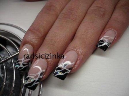 poprvé jsem si udělala delší, na šablonky jen kamufláž gel a stříbrné razítko konad ...snad v práci vydrží