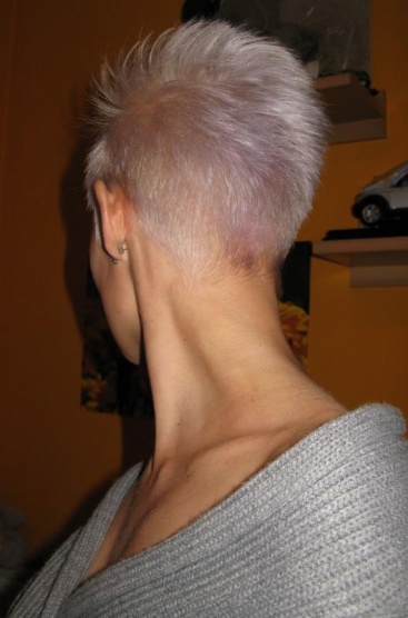 Taky jsem dlouhou dobu nosila dlouhé vlasy. Asi před čtyřmi lety jsem je zkrátila od té doby zkouším různé variace a barvy krátkých vlasů. Momentálně mám světle blond až do stříbrna (bohužel špatným světlem při focení se místo stříbrné objevila fialková )