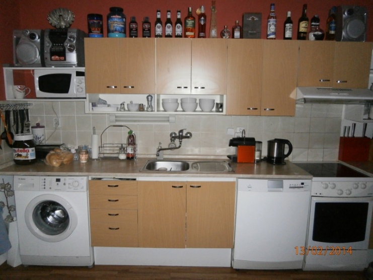 Nechci se tě žádným způsobem dotknout, ale hodně rušivě a "neuklizeně" na mě působí ta sbírka lahví úplně nahoře. Stačilo by je odklidit a kuchyně by působila upraveněji. Ale samozřejmě rozumím, že je momentálně nemáš kam uložit.