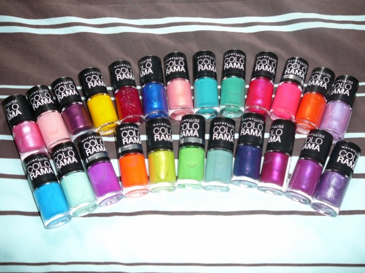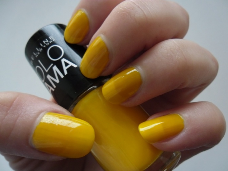 Maybelline Colorama 67 fialový, 108 zlatý, 749 žlutý. 2 vrstvy, ihned zasychá a vůbec se neodlupuje.