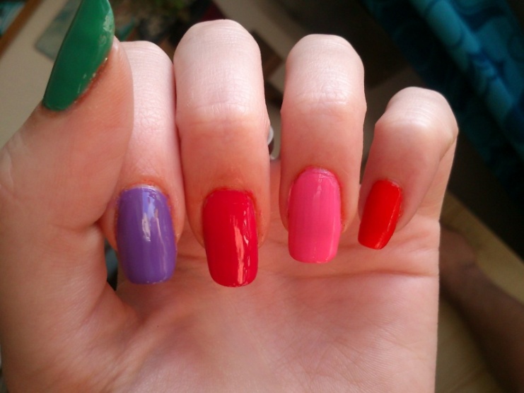 venku mi foťák tu fialovou bohužel zkresluje do modra, je stejná jako v lahvičce, jinak jsou barvy stejné jako na 3. fotce