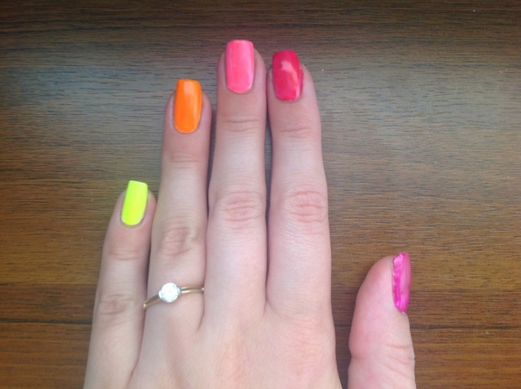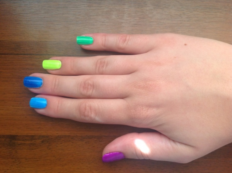 Neonky od dermacolu, jdou podle řady a pod každou neonkou mám bílý lak GS.
