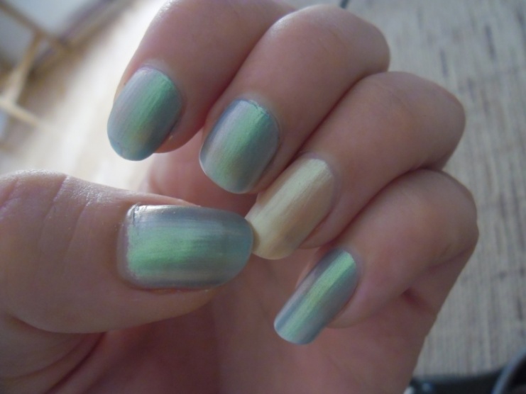 Loreal Color Riche 624 a 307. 2 vrstvy. Modrý háže odlesky do zelena.