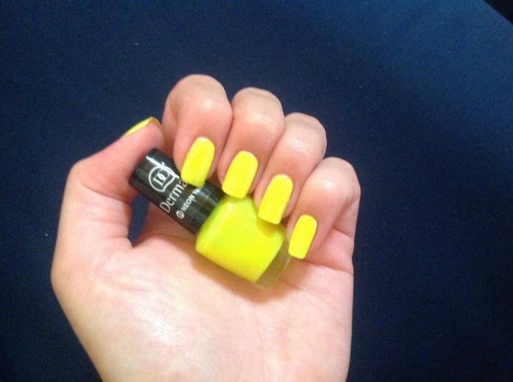 Dermacolu neonka yellow, pod ním klasicky bílý GS. Fotka je schválně trochu rozmazaná aby byla vidět reálná barva.