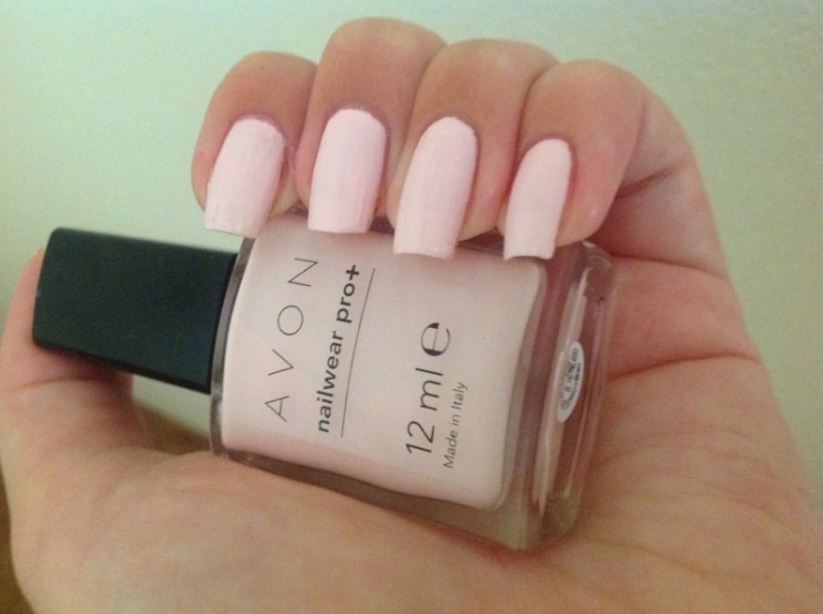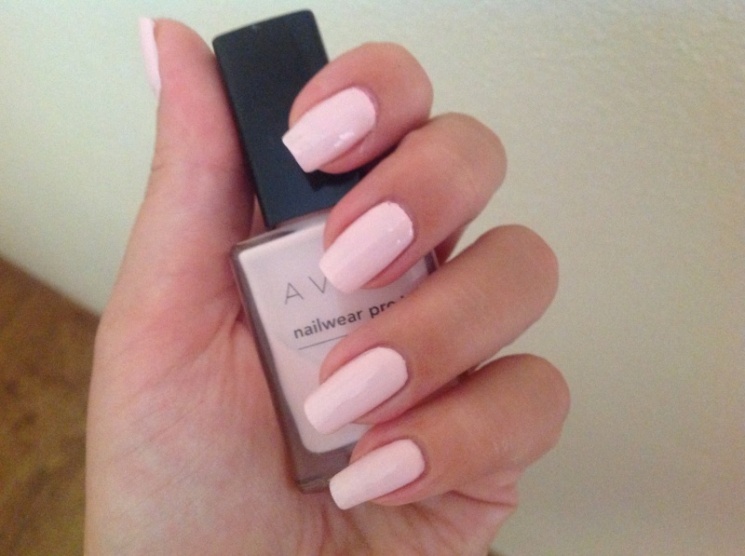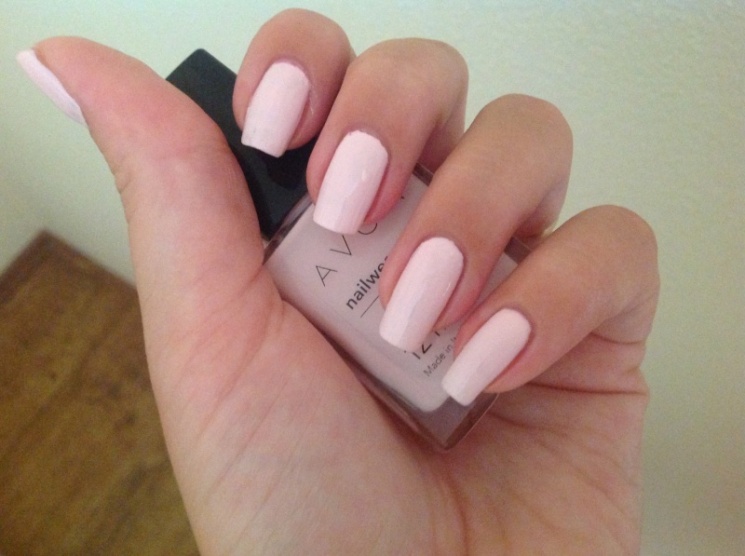 Avon pastel pink, 2 vrstvy, ve skutečnosti jde o kapku víc do růžova. Nejlépe je vidět asi na 1. fotce.