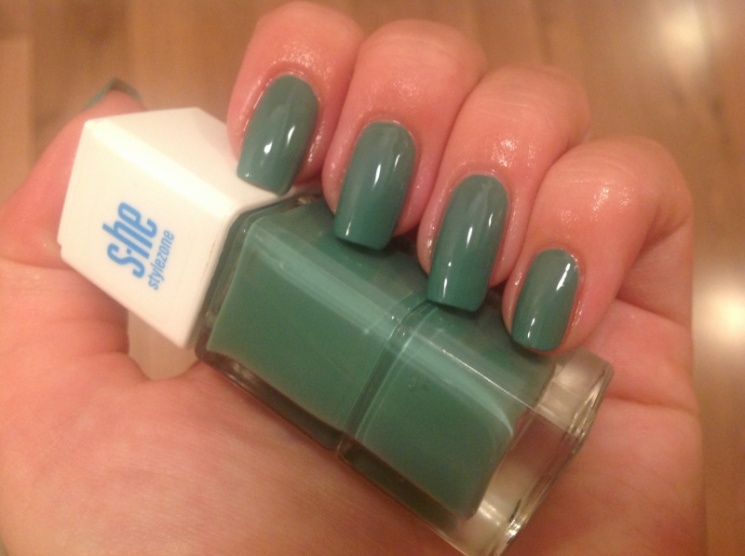 S-he stylezone 121\312, 2 vrstvy. Byl ve slevě, je to naprosto originální barva, kryje hezky ve dvou vrstvách a pěkně se lakuje, rychle schne. No uznejte že za 30 Kč jsem ho tam nemohla nechat